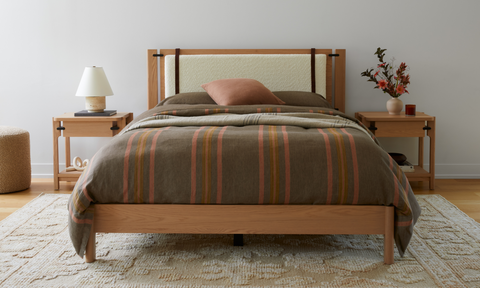 The Join bed exists at the intersection of simplicity and elegance. A minimal solid wood frame is connected to custom-milled metal splines which unite the headboard to the frame, creating a lasting minimalist centerpiece for your daily retreat.